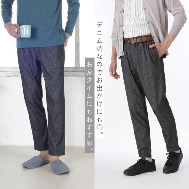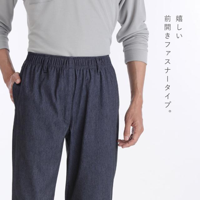 ズボン メンズ 冷感,ズボン メンズ 夏,ウエストゴム パンツ メンズ,ズボン,パンツ,デニム調,ニット,ルームウェア,ルームパンツ,部屋着,前開き,ポケット,ポケット付き,ウエストゴム,総ゴム,ウエスト,ゴム,ウエスト,ゆるい,締め付けない,しめつけない,苦しくない,ストレッチ,伸縮,伸びる,フィット,動きやすい,ストレスフリー,楽ちん,楽,ラク,ブラック,黒,ネイビー,紺,M,L,LL,3L,大きいサイズ,ゆったり,メンズ,男性,春夏,春,夏,秋,冬,オールシーズン,