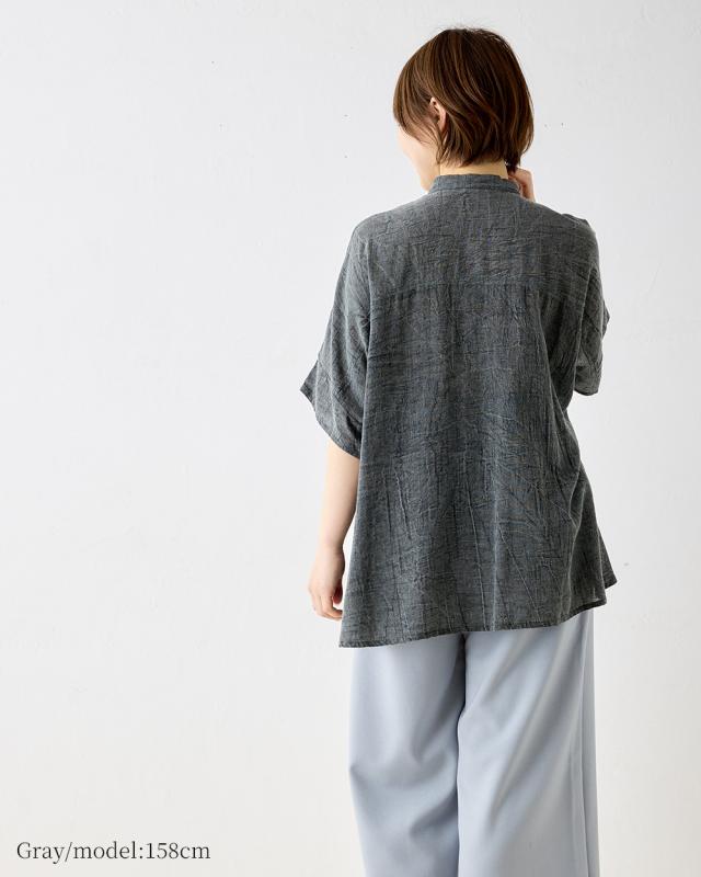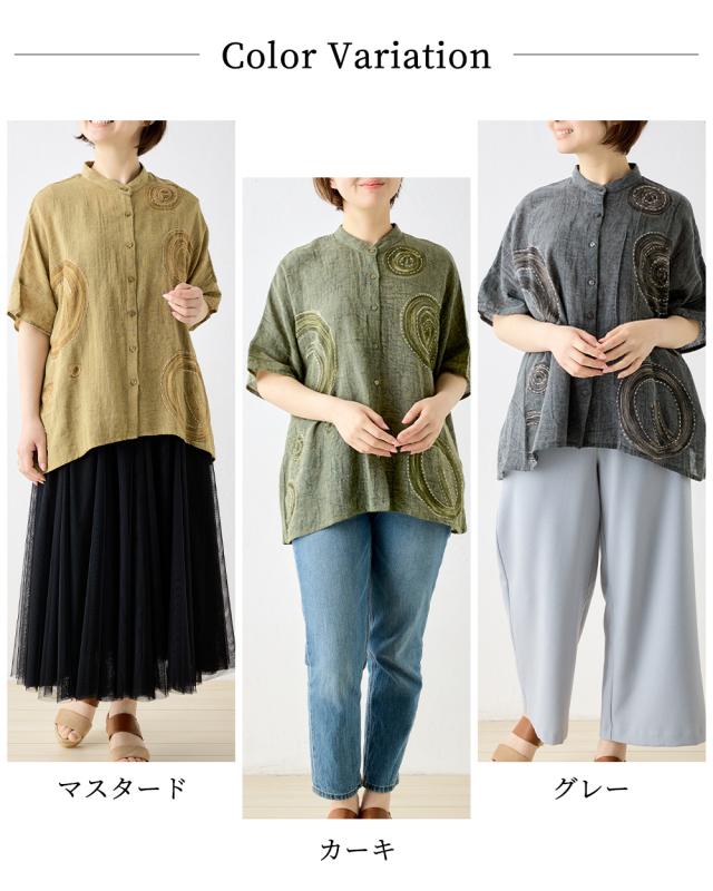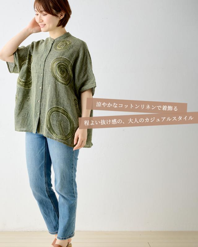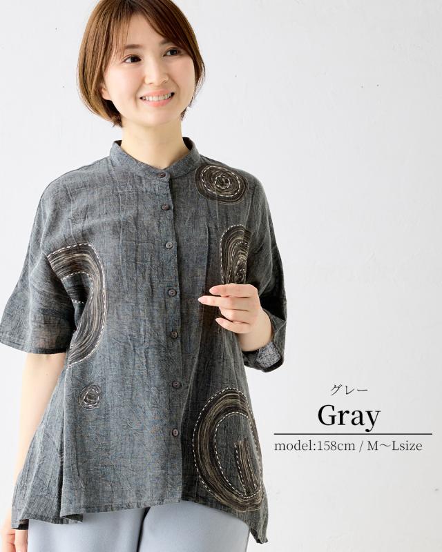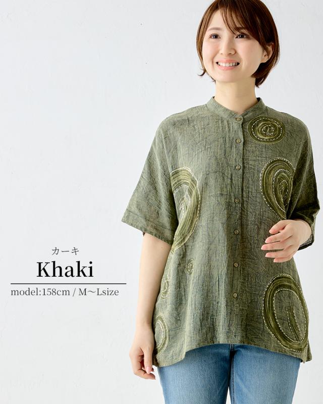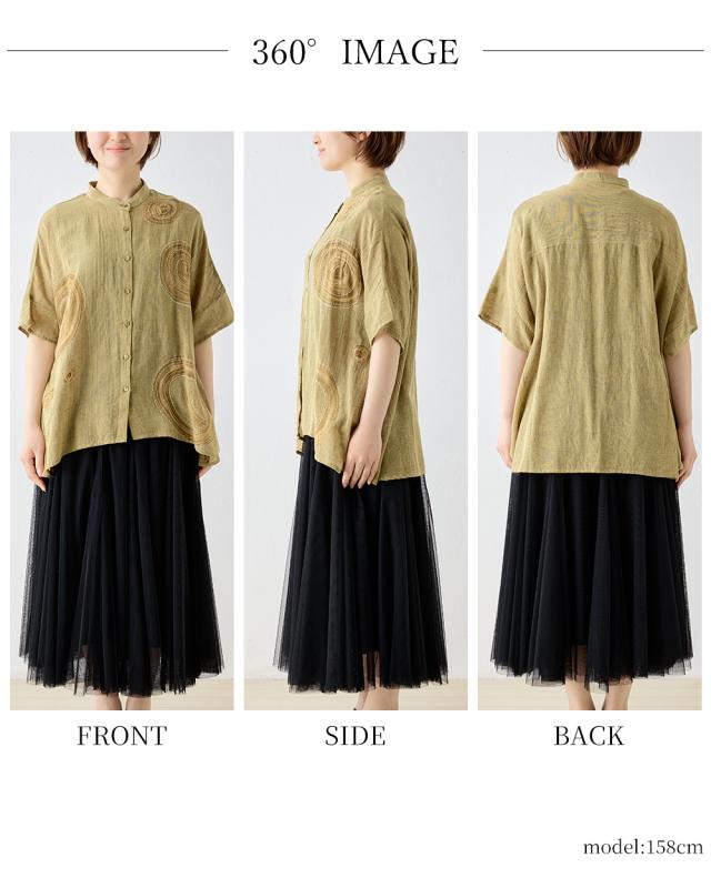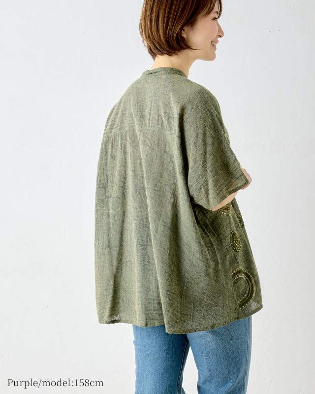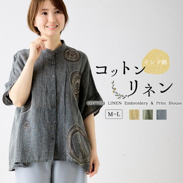 インド綿 デザインブラウス レディース 半袖 綿 麻 刺繍 アシッドウォッシュ スノーウォッシュ コットンリネン M〜L ゆったりシルエット 体型カバー 大人可愛い 春夏 おしゃれ 夏コーデ 旅行 部屋着にも カジュアル ゆるカジ リラックスウェア デイリーコーデ