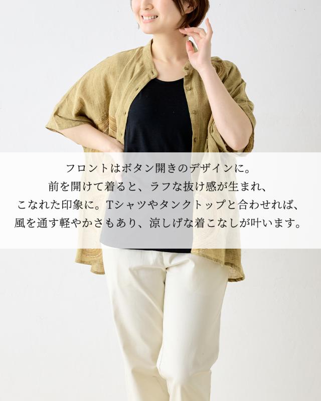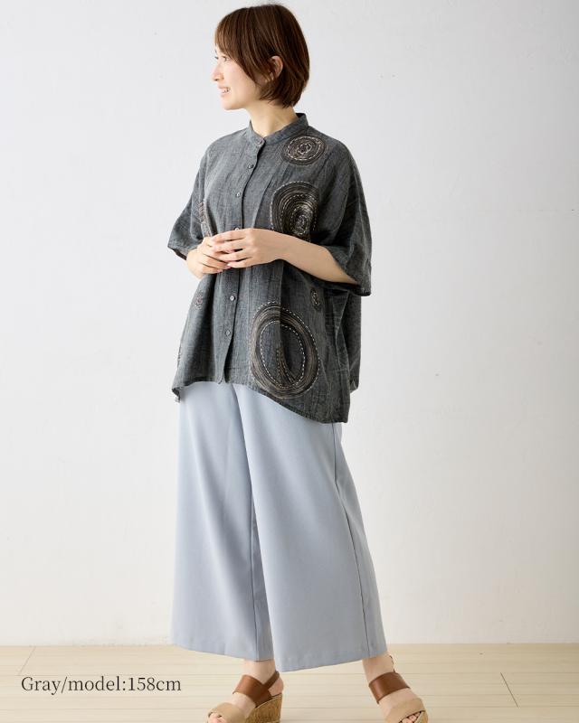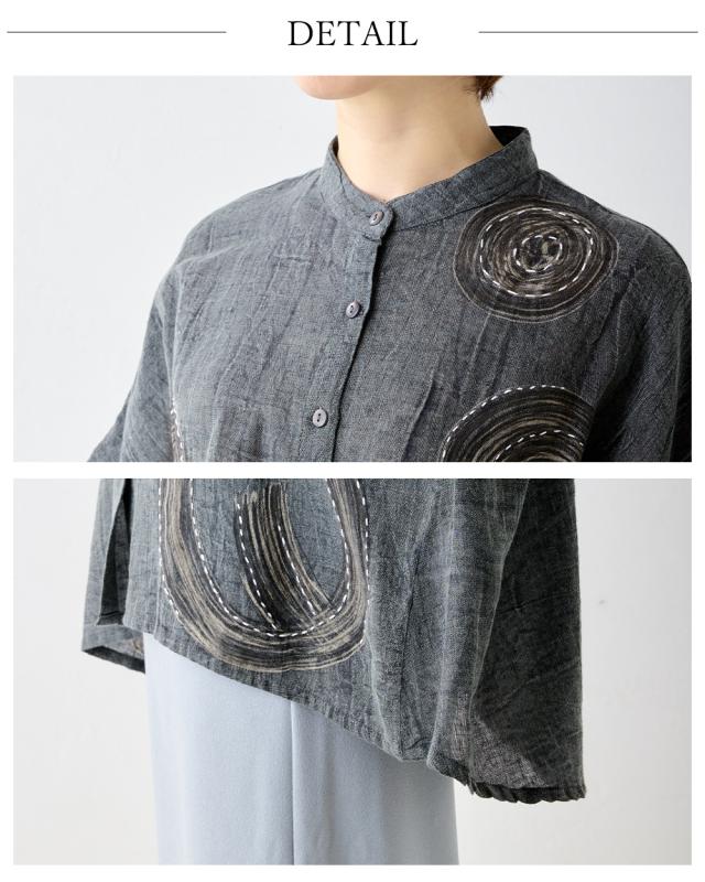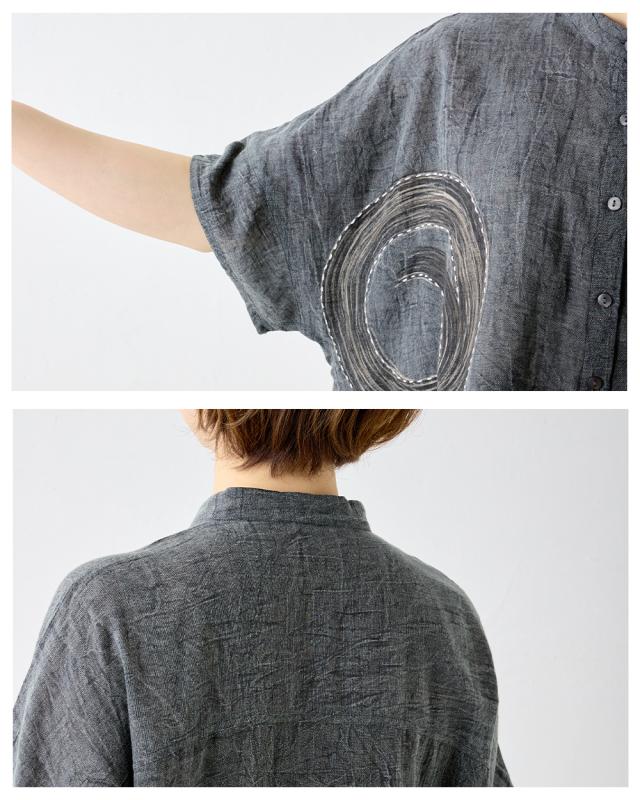 刺子刺繍が際立つシンプルなシルエットになっており、様々なスタイルに合わせやすい万能アイテムです。