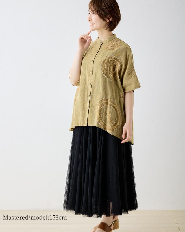| 商品詳細/その他 | プリント×アシッドウォッシュ×刺繍で、ほどよい個性派オシャレを楽しめるブラウス |