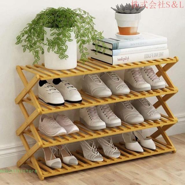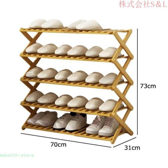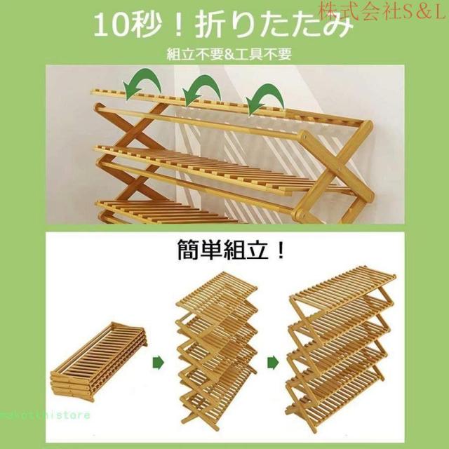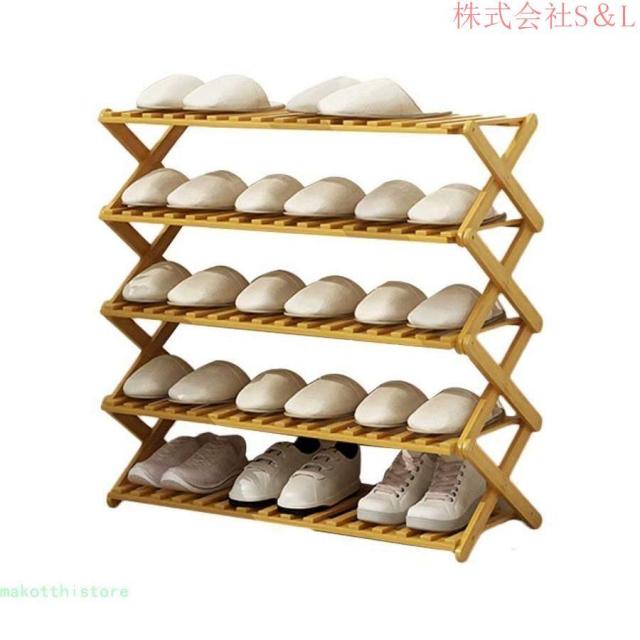 シューズ ラック 収納棚 折りたたみ式靴箱 天然竹製 棚5段 ラック 下駄箱 靴箱 省スペース 靴入れ 玄関 キャンプ ベランダ シューズボックス 組立不要