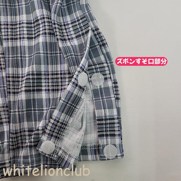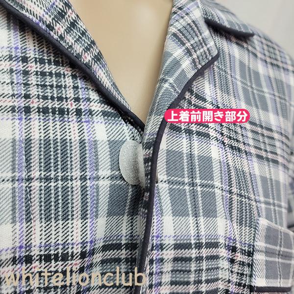 このパジャマは上着前開き・袖口・ズボン腹部・