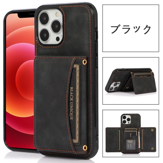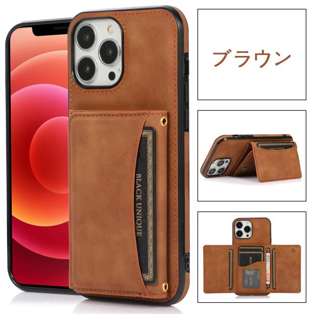 iPhone16E ケース カバー 耐衝撃 レザー iPhone16Pro iPhone15Pro iPhone14Pro スマホケース カードケースiPhone16Plus iPhone15Plus iPhone14Plus iPhone16ProMax iPhone15ProMax iPhone14ProMax ケース 背面ポケット カード収納 カード入れ