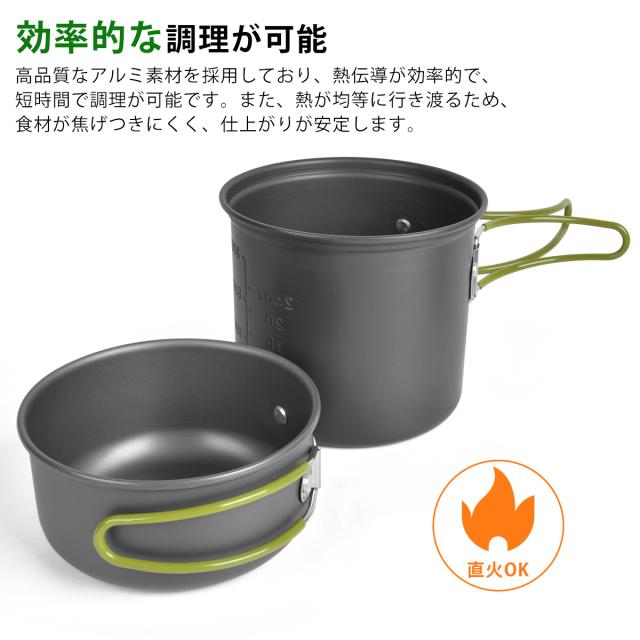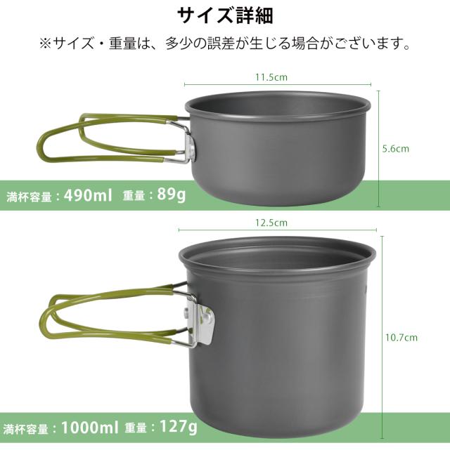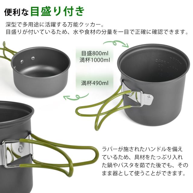 【送料無料】クッカーセット【2~3人分用】 収納袋付き アウトドア キャンプ用品 ファミリーテーブルウェア 食器セット 鍋セット クッカー セット キャンプ用 登山 軽量