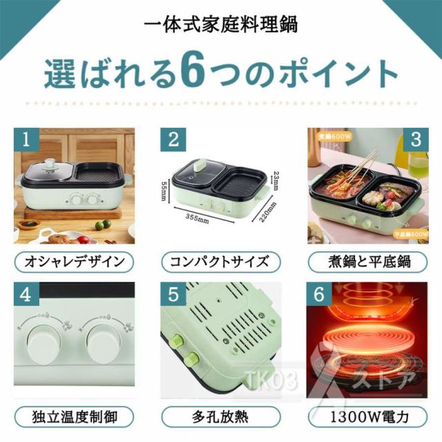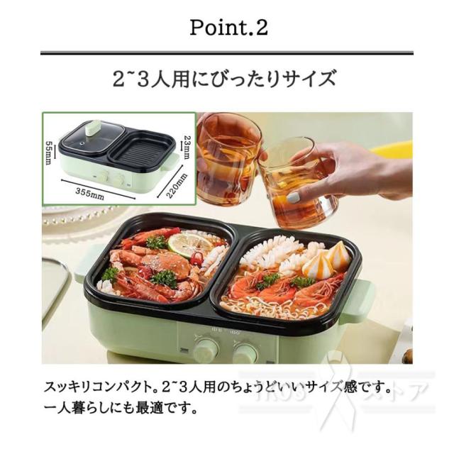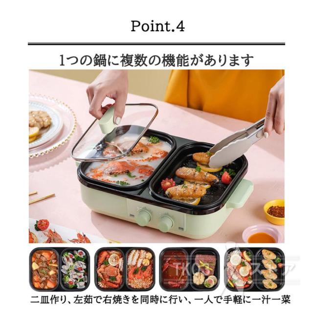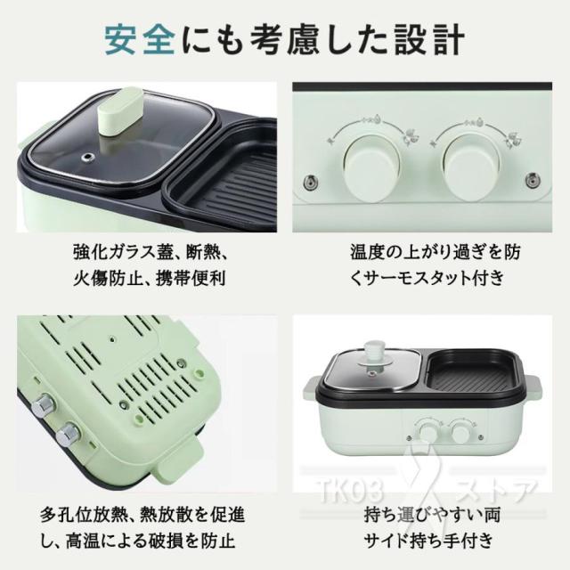 ホットプレート 焼肉プレート 焼肉 プレート 一人用 小型 鍋 無煙 電気ホット 電気鍋 電気グリル鍋 電気なべ 一人焼肉 一人鍋 無段階調整 家庭用 分別温度制御