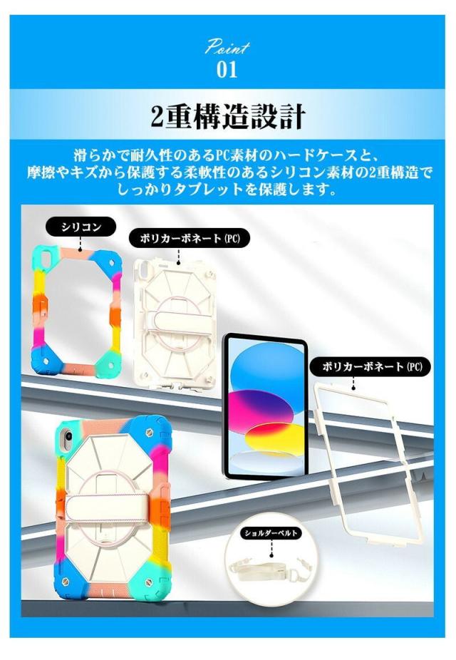 耐衝撃素材と二重構造で、iPadを外部からの衝撃から守ります。