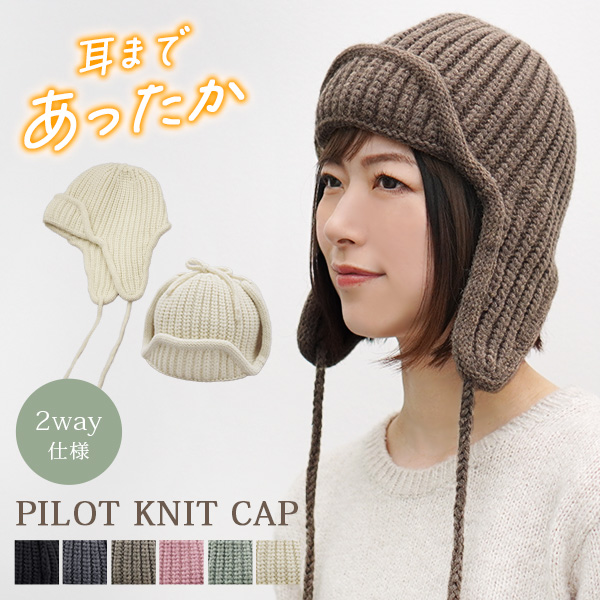 ニット帽 レディース 秋冬 おしゃれ かわいい 耳付き 耳当て パイロットニット フライトニット 防寒 温かい あったか おしゃれ オシャレ 人気 トレンド 【Pilot Knit Cap】