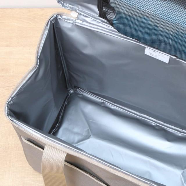 内側にあるメッシュポケットに保冷剤を入れれば保冷力が高まり、暑い日の買い物や冷凍食品を買っても安心です。