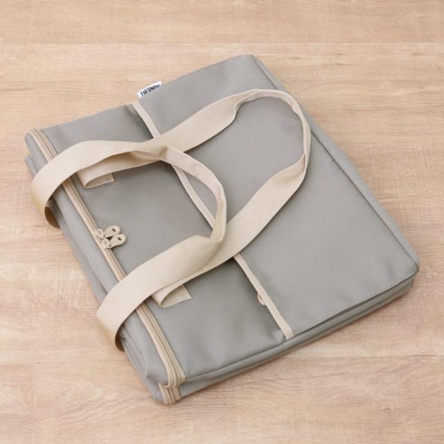 折りたたんで側面のボタンを留めるとコンパクトに保管できます。持ち運びしやすいのはもちろん、使わない時の収納にも困りません。