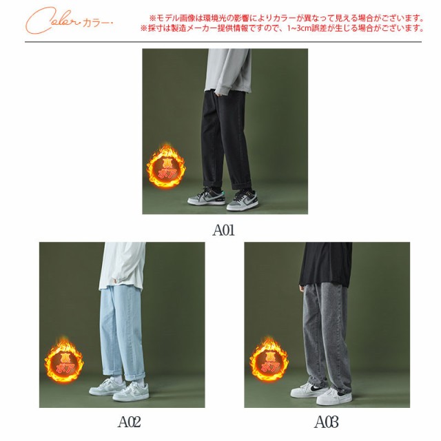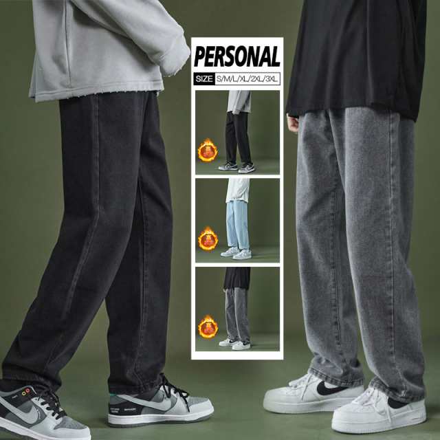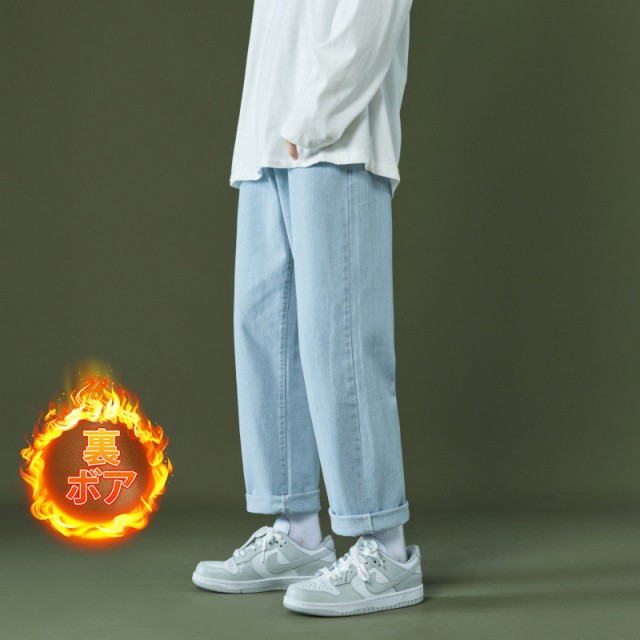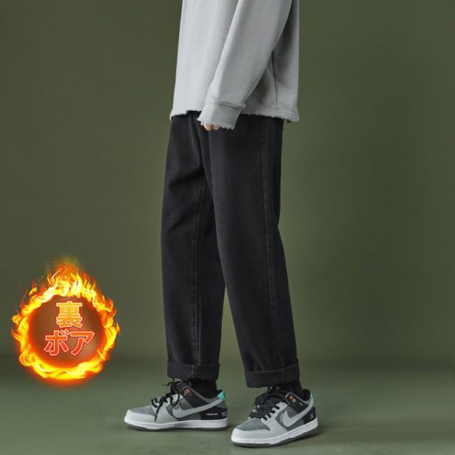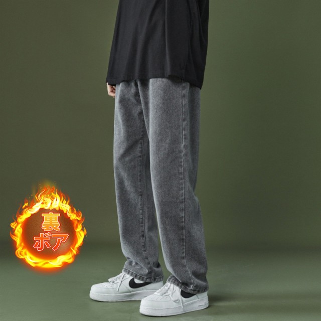 【ポイント5倍!】 デニムパンツ ワイドパンツ メンズ デニム 裏ボア 裏起毛 ジーパン ジーンズ ストレート ブリーチ ゆったり プレゼント ロングパンツ 長ズボン B系