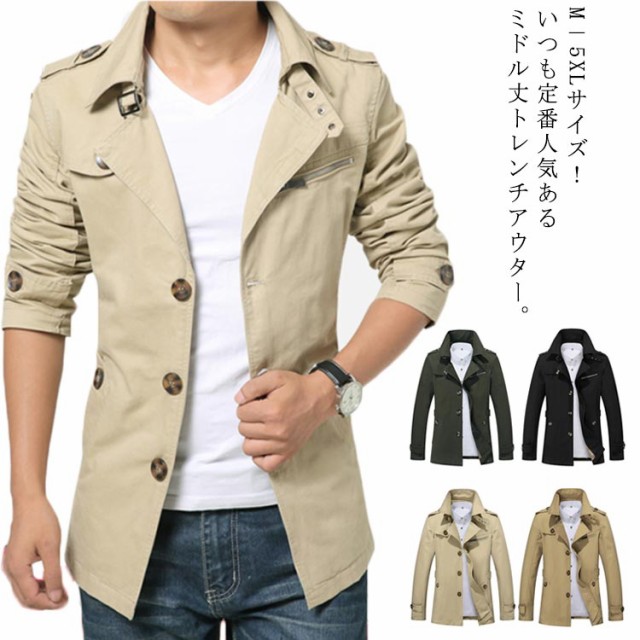 M−5XLサイズ ステンカラーコート ビジネスコート スプリングコート 春服 春物 大きサイズ カジュアル キレイめ 綿 メンズ