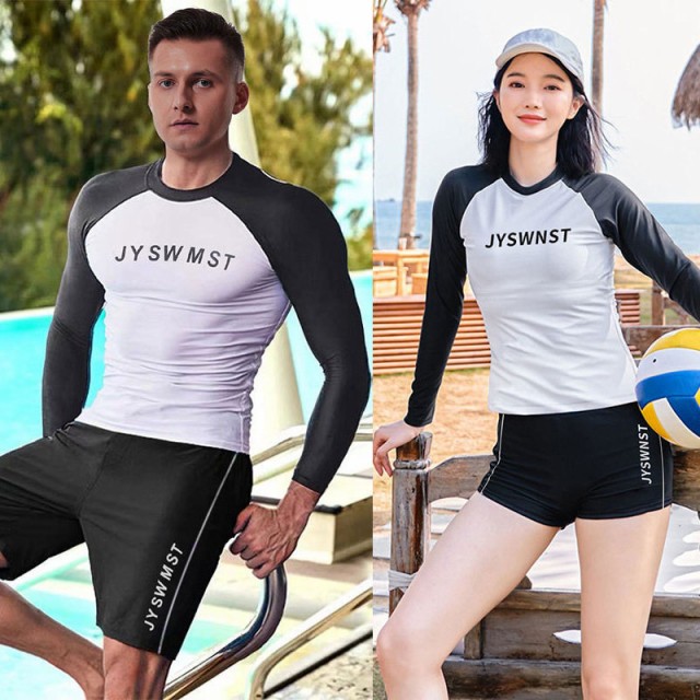 【ポイント5倍!】水着セット レディース メンズ ラッシュガード 日焼け防止 カップル水着 ペアルック 上下セット スポーツ 半ズボン フィットネス セパレート プール