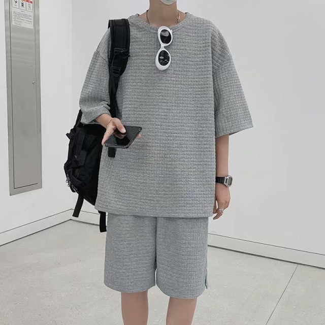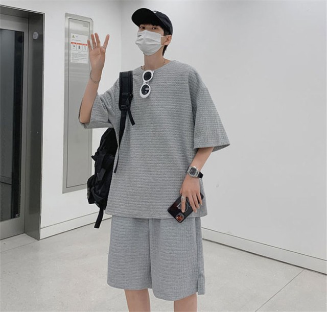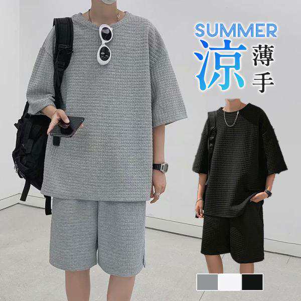 【ポイント5倍!】2点ご購入で200円OFF!セットアップ メンズ 夏 上下セット 半袖 スウェット 薄手 ハーフパンツ 無地 ルームウェア 部屋着 カジュアル ゆったり 父の日
