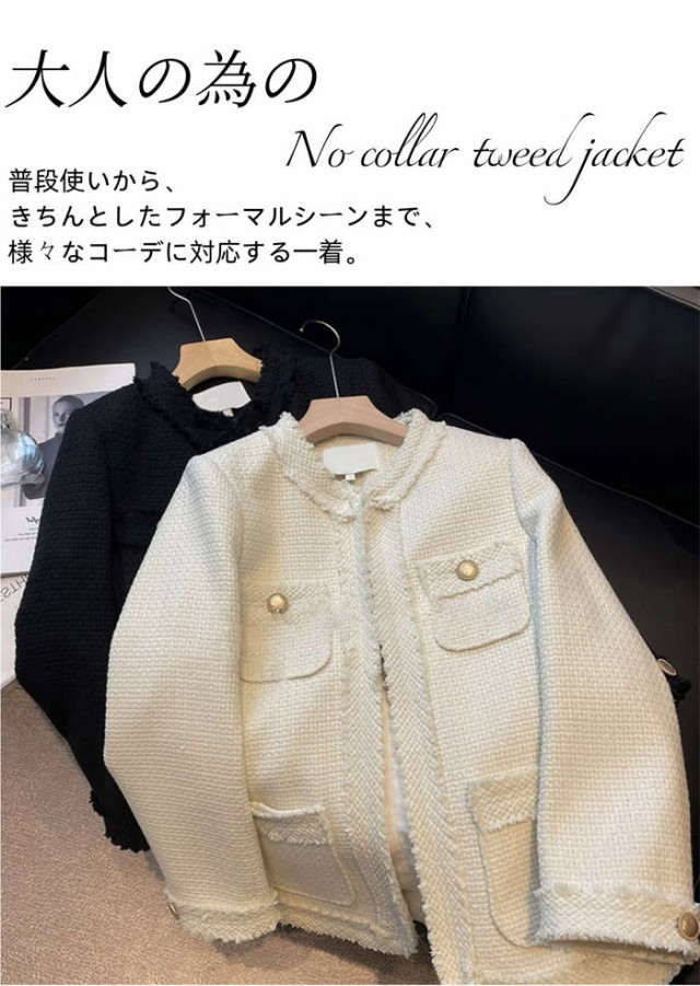 キーワード ツイードジャケット ジャケット レディース フォーマル ホワイト ショート丈 カジュアル ノーカラージャケット 春 秋 アウター フォーマルスーツ ママスーツ お宮参り パーティー 結婚式 デート 入学式 入園式 卒業式 卒園式 女子会 お食事会 白 黒 中綿 中綿ジャケット