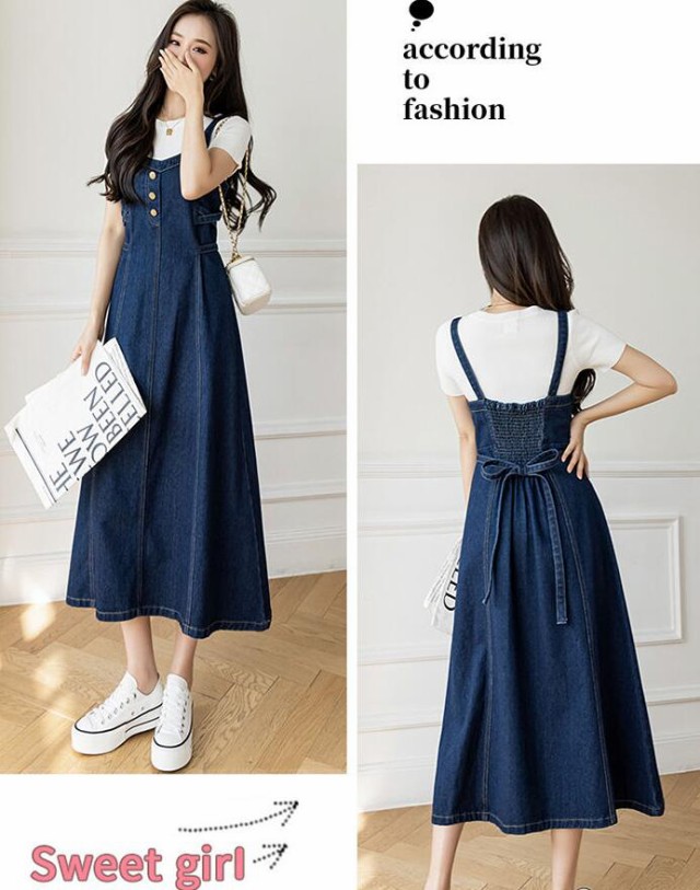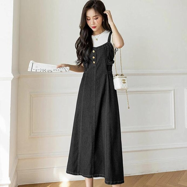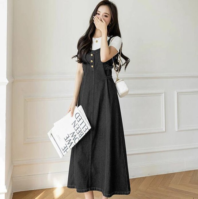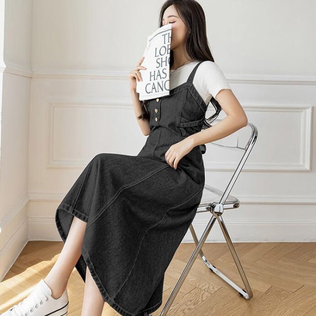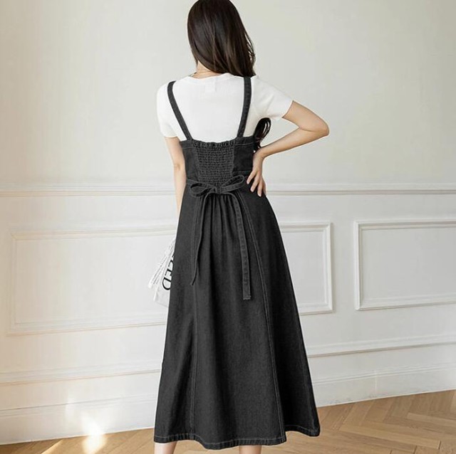 デニムスカート ジャンパースカート 春夏 秋 サロペット ロングスカート デニム ジャンスカ スカート Aライン 細見え レディース ロングジャンスカ オールインワン 大人 カジュアル エレガント 重