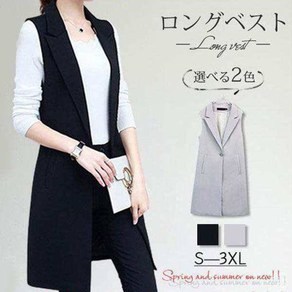 ベスト レディース ノースリーブ ロングジレ トップ 大きいサイズ カジュアル 着痩せ 無地 前開き コーデ トレンチ オフィス 通勤 OL