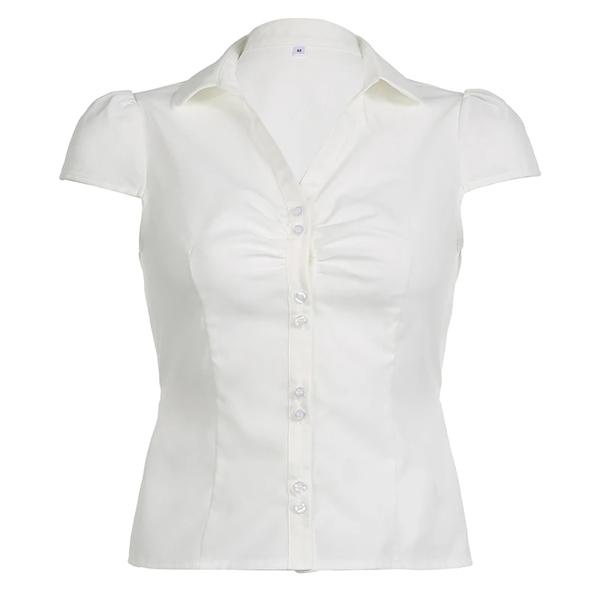 女性用のヴィンテージ調節可能なクロップトップ プリーツボタン付きの白いブラウス 半袖 韓国のファッションTシャツ カジュアルなストリートウェア y2k Tシャツ