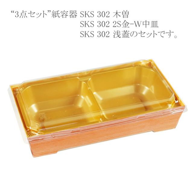 【直送/代引不可】“3点セット” 紙容器 SKS 302(43) 木曽・2S金-W中皿・浅蓋セット 800枚