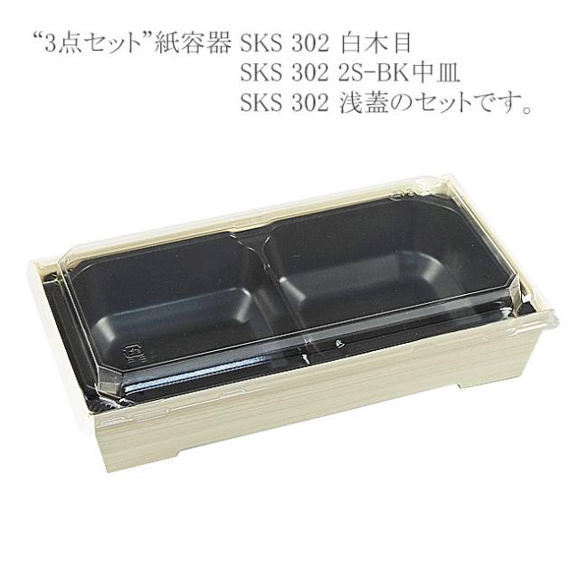 【直送/代引不可】“3点セット” 紙容器 SKS 302(43) 白木目・2S-BK中皿・浅蓋セット 800枚