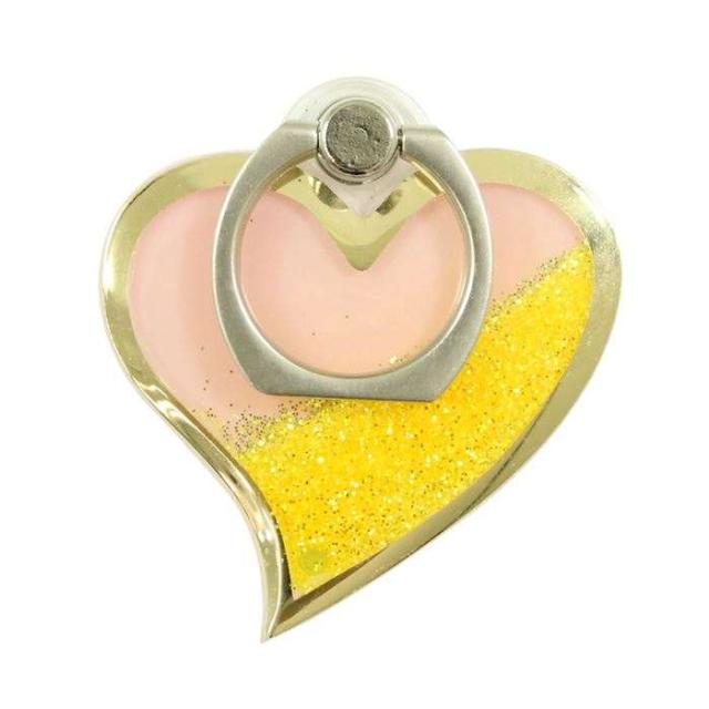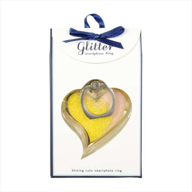 ■商品名:スマートフォン 汎用 スマホリング バンカーリング イエロー スマートフォンリング グリッタースマートフォンリング ハート ハート型 HEART キラキラ 落下防止 マルチリング RING リング スマホ タブレット