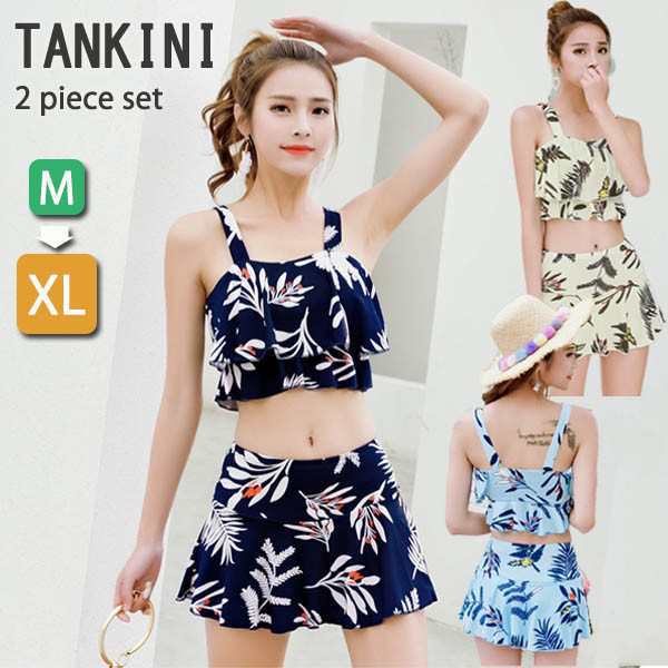 タンキニ 水着 キャミソール水着 フレアビキニ スカート インナーパンツ ワイヤーなし パッド付 レディース ボ