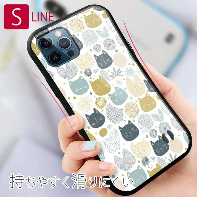 S-LINE ケース iPhone13 mini iPhone13 Pro Max iPhone12 Pro iPhone11 Pro iPhoneXs iPhoneXR Xperia 5 III Xperia 10 III Pixel 5a AQUOS sense6 かわいい ネコ 猫 用品 雑貨 北欧デザイン 猫と花
