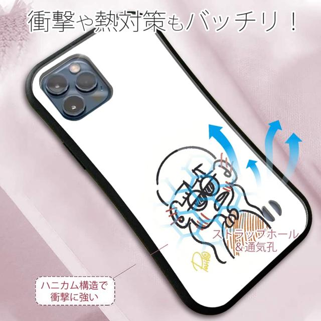 | 素 材 | 側面はゴムのように柔らかいTPU素材で、背面は衝撃に強いアクリル樹脂で、スマホ本体を守ります。ケースの内側はハニカム構造!スマホ本体の熱を逃がすばかりか、衝撃にも強い構造となっています。万が一の落下でもケースが割れることがないばかりか、TPUはシリコンとは異なり伸びることもなく、スマホの脱着が容易なケースとなります。 |
