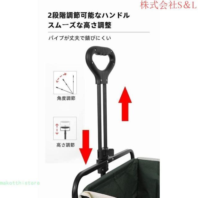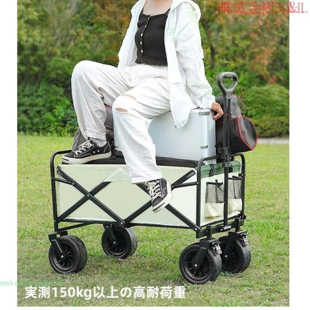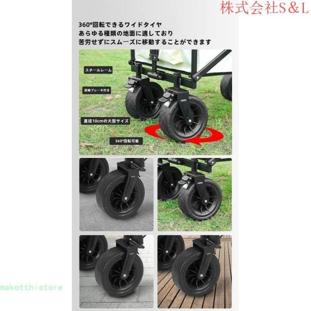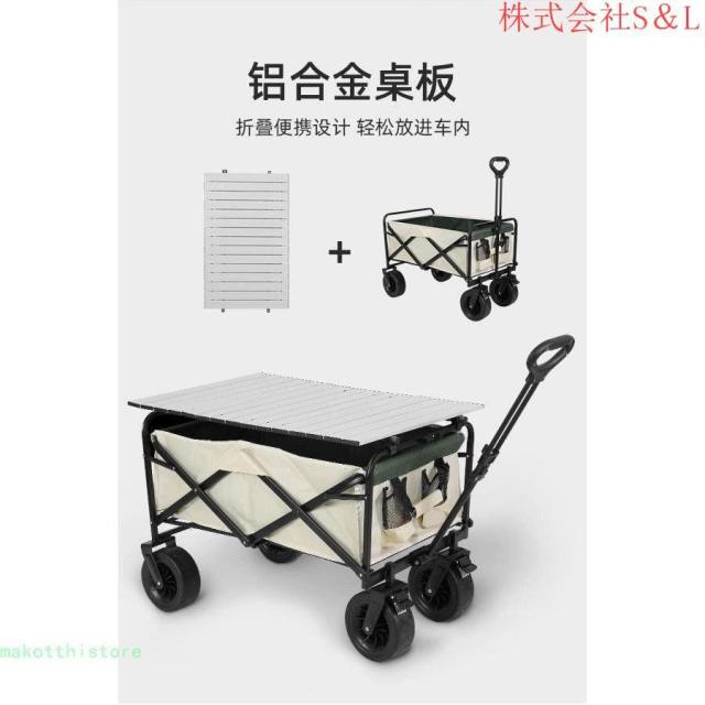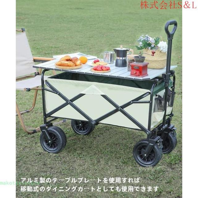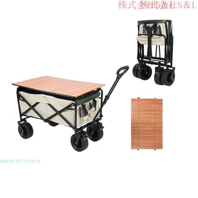 キャリーワゴン 折りたたみ 自立可 大容量 テーブル付き O型ハンドル 高さ2段階調節 角度調節 大直径タイヤ 台車 アウトドア キャンプ用品 レジャーカート 収納