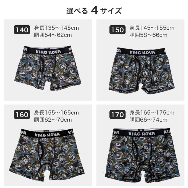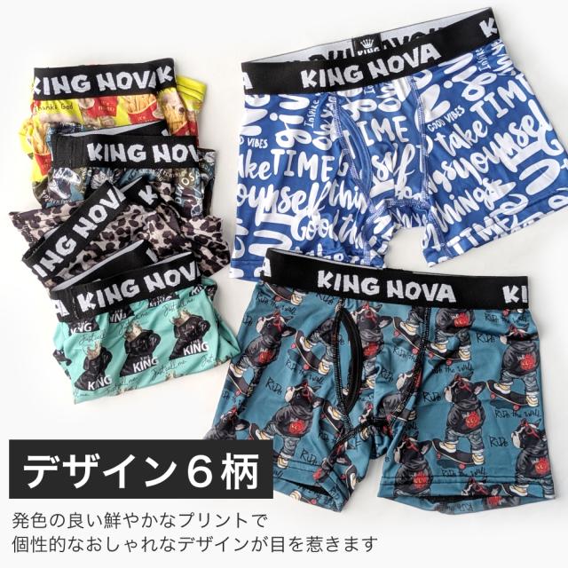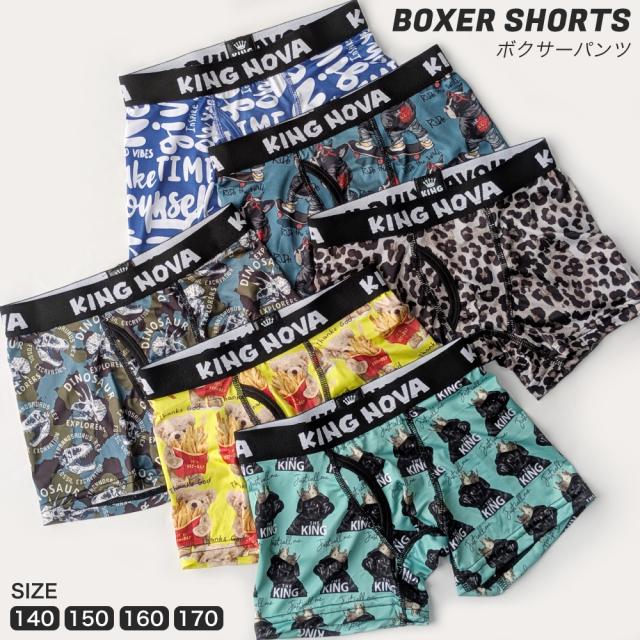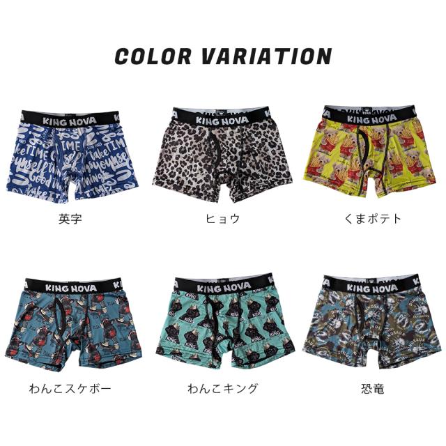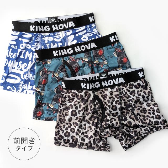 ボクサーパンツ 子供 前開き ジュニア ティーンズ 下着 KING NOVA キングノバ かっこいい おしゃれ ドライ 速乾 前あき ショーツ ブランド ヒョウ 犬 派手 小学生 高学年 中学生 高校生 140 150 160 170