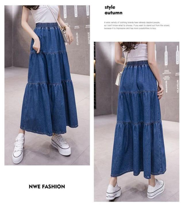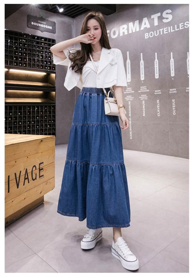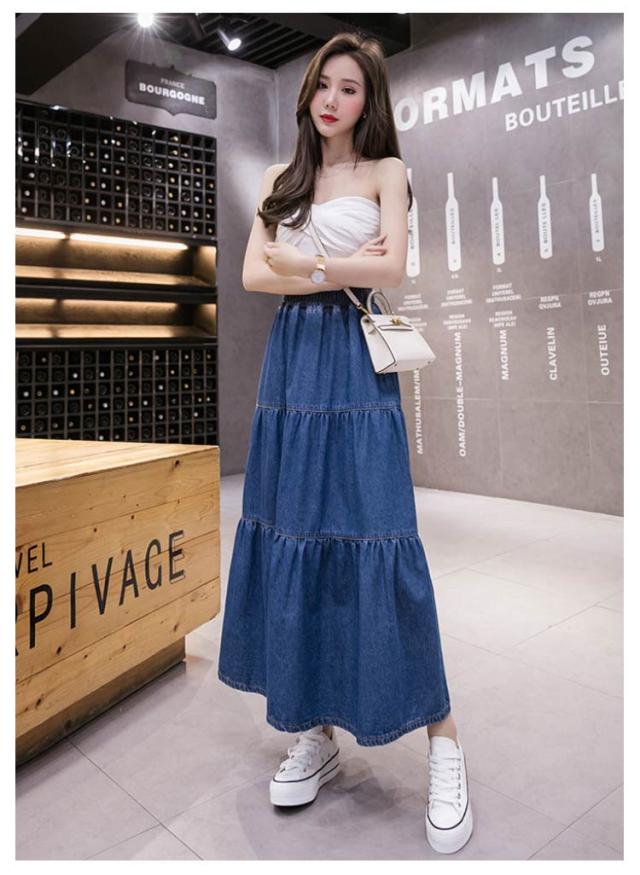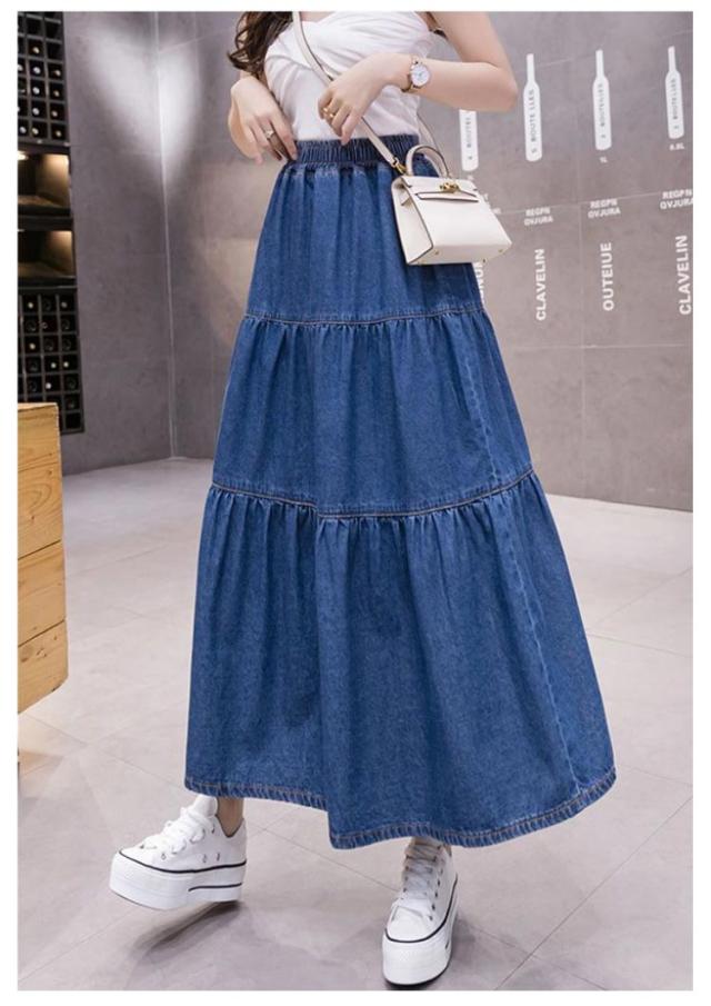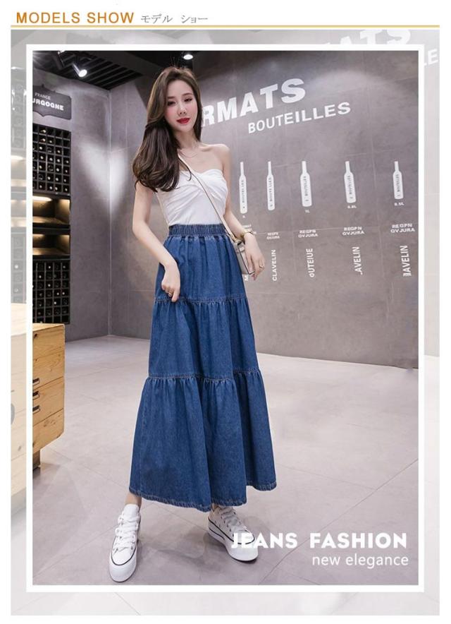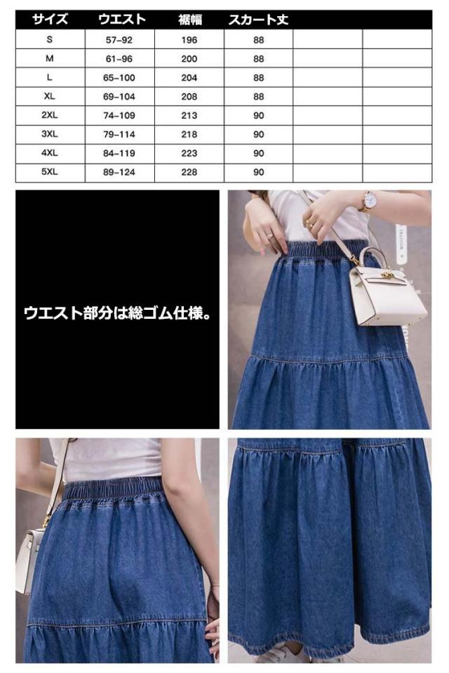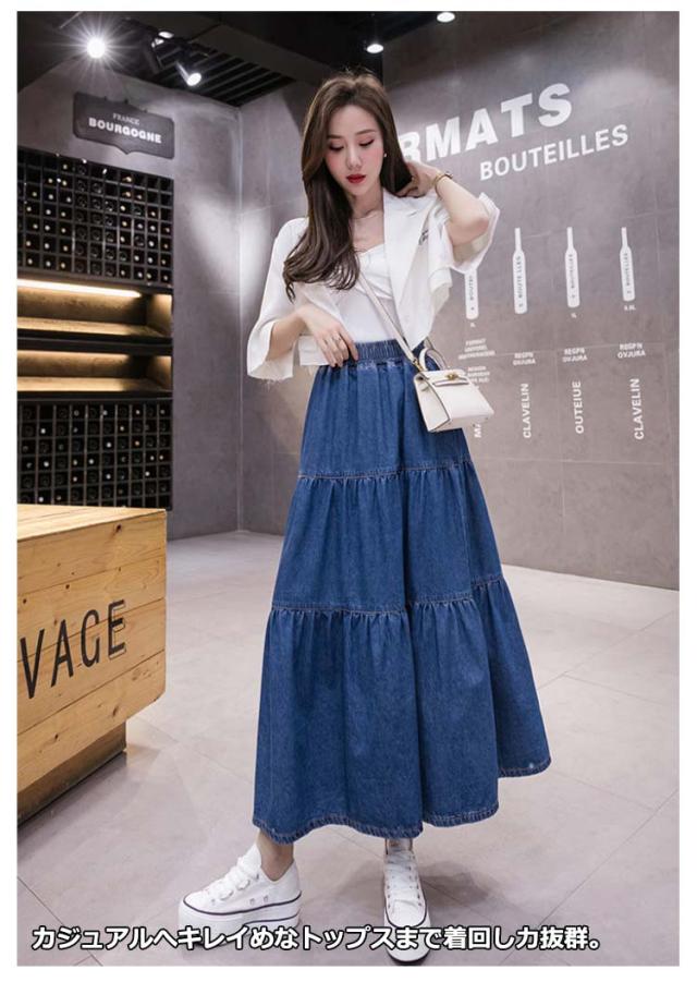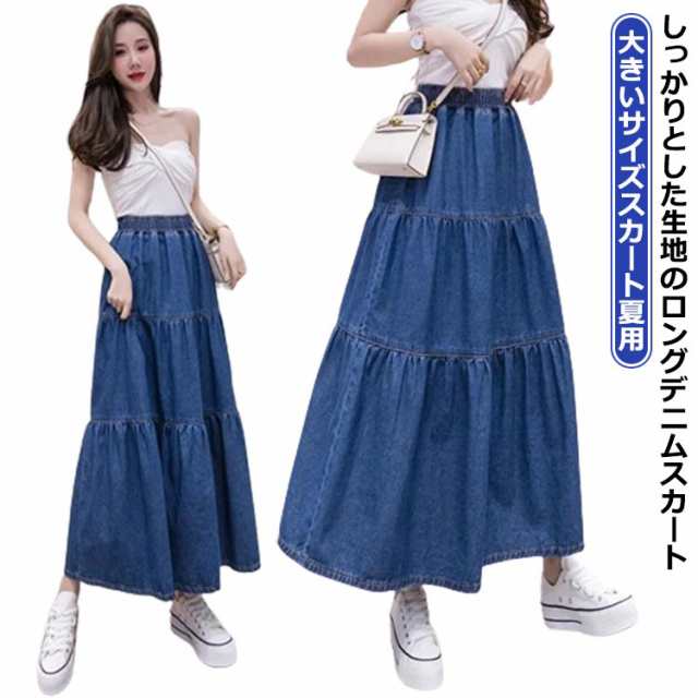 デニムスカートロング マキシ丈 ロング フレアスカート 夏 デニムスカート 送料無料 大きいサイズ レディース デニムスカート Aライン デニム ティアード ウエストゴム ロング丈 ギャザー カジュアル フレア ゴム 無地 ティアード スカート 30代 40代