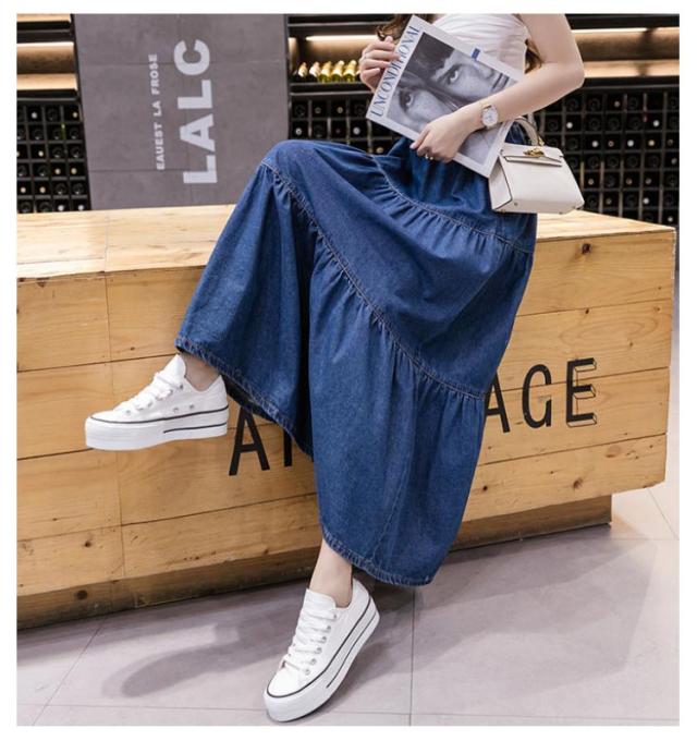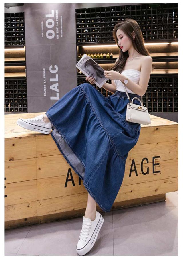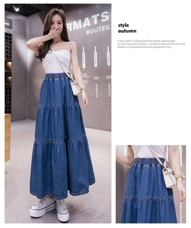 | しっかりとした生地のロングデニムスカート ウエスト部分は総ゴム仕様 カジュアルへキレイめなトップスまで着回し力抜群 | |