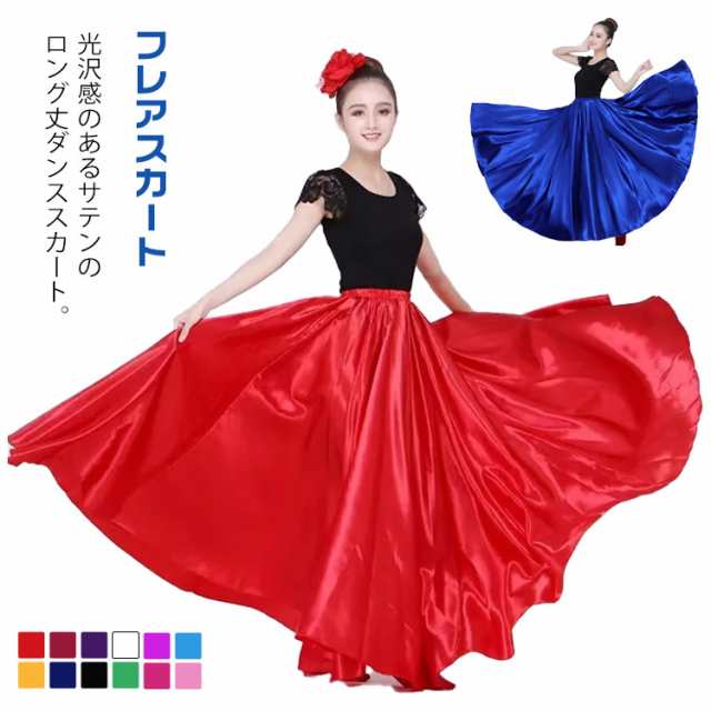 フレアスカート ウエストゴム 80cm/85cm/90cm ステージ衣装 360度 540度 720度 ダンススカート 舞台衣装 ダンススカート 演奏会 ロングスカート 光沢 無地 練習着 レッスンウェア 社交ダンス ベリーダンス ダンス衣装 ラテンダンス パソドブレ