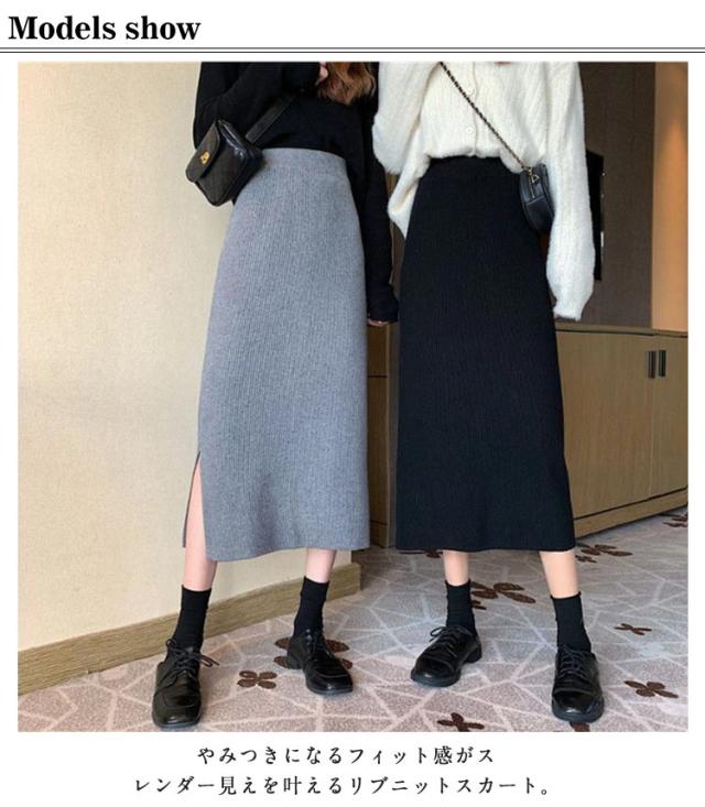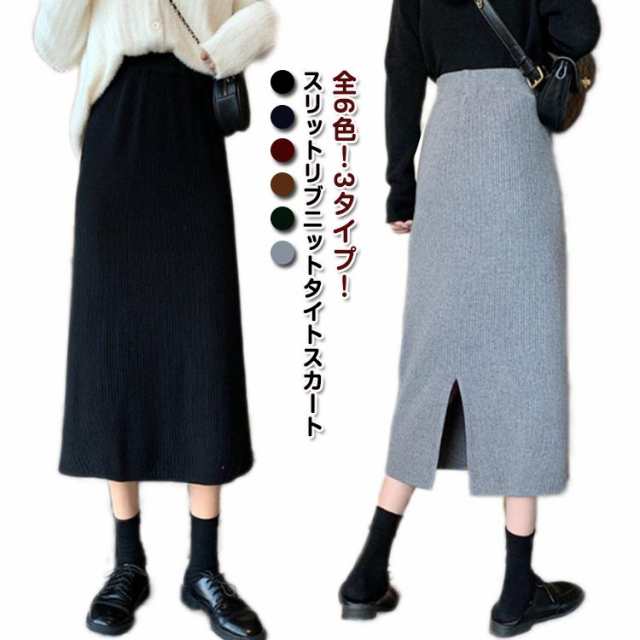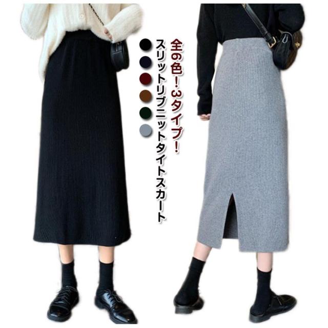 秋 スリットタイトニットスカート タイトスカート レディース ペンシルスカート ニットスカートリブニットスカート ニットスカート ロングスカート ボトムス ロング スリットタイトニットスカート ミモレ丈 動ける ウエストゴム 春 スカート 冬 送料無料 敬老の日
