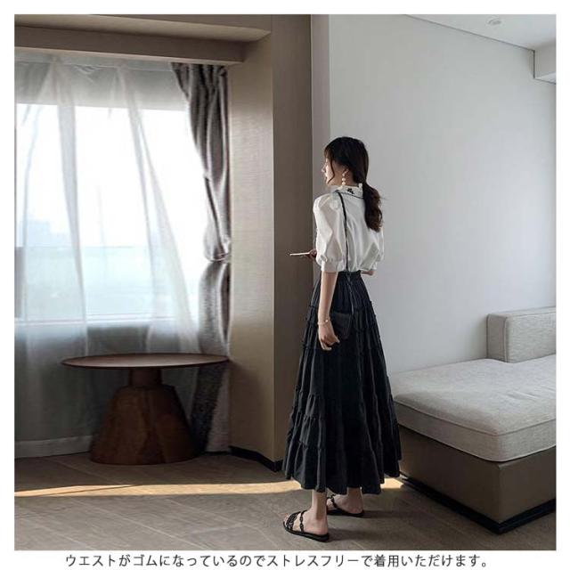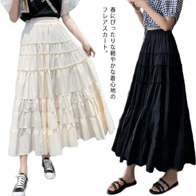フレアスカート 総丈90cm ロングスカート マキシ丈 レディース 裏地付き Aライン ゆったり 無地 体型カバー ウエストゴム ロング丈 ボトムス 大人可愛い 2022春夏 S M L 20/30/40/50代