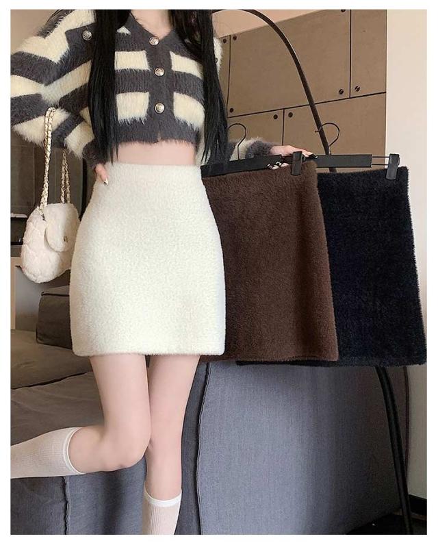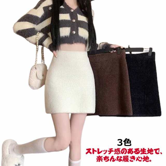 レディース スカート ミニ ミニスカート タイト もこもこ モコモコ ふわふわ 無地 ボア 短毛 毛足 フェイクファー 秋冬 黒 韓国 ハイウエスト オフィス OL 通勤 学生 通学 デート お出かけ あったか 暖かい 美脚 カジュアル 大人 可愛い セクシー 送料無料