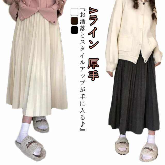 ニットスカート フレアスカート 秋冬 レディース 厚手 スカート ボトムス ロング丈 ニットプリーツスカート ロングスカート プリーツ ウエストゴム ニットスカート 暖かい 防寒 大人 かわいい Aライン カジュアル 通勤 韓国 入園式