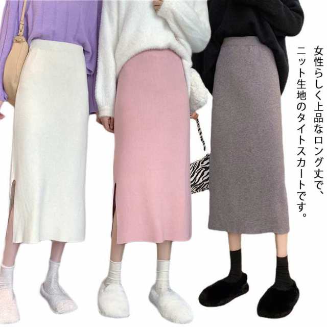 送料無料 ニットスカート スカート 春 スリット リブニット タイトスカートプリーツ スカート 動けるストレッチ リブニットスカート レディース ニット リブ スリット ロングスカート おしゃれ