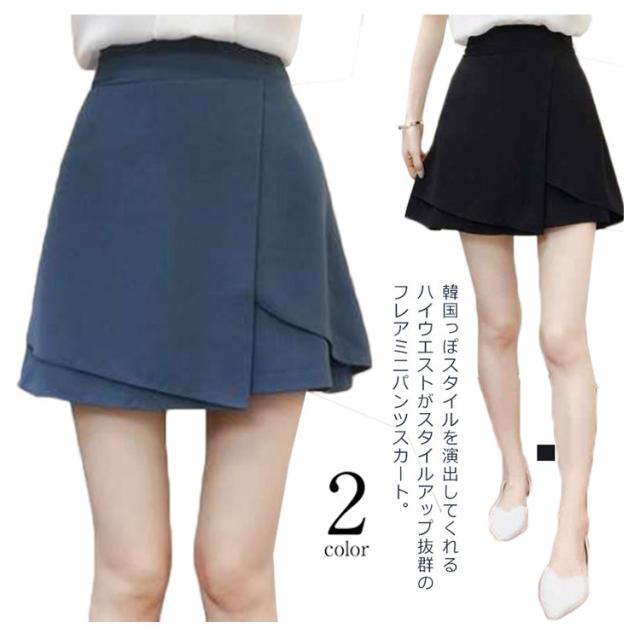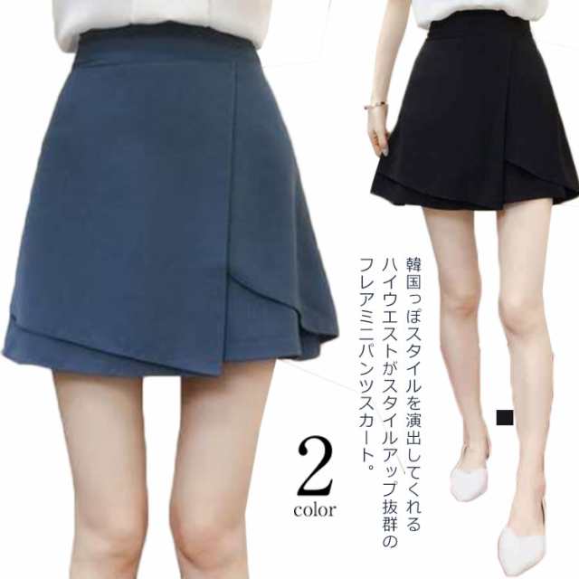 【送料無料】フレアスカート パンツスカート ミニスカート レディース ミニ スカート ハイウエスト ラップスカート aライン 韓国風 カジュアル 黒 大きいサイズ フェミニン エレガント きれいめ ブラック