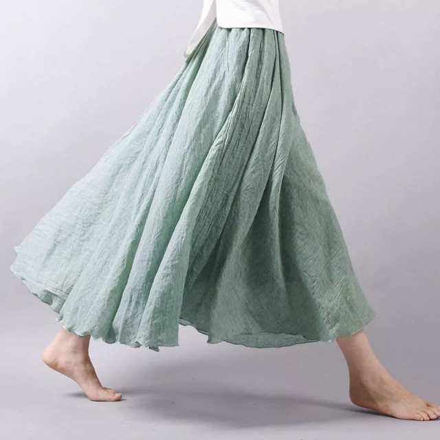 リネン調 レディース 夏 フレアスカート レトロ 低身長 ウエストゴム マキシ丈 ロングスカート カジュアル おしゃれ