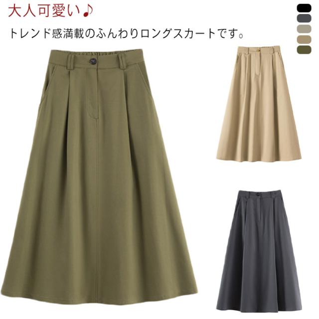 フレアスカート スカート ロング丈 ボトムス レディース Aライン プリーツ ウェストゴム 体型カバー 春夏物 通勤 オフィス 普段着 お洒落