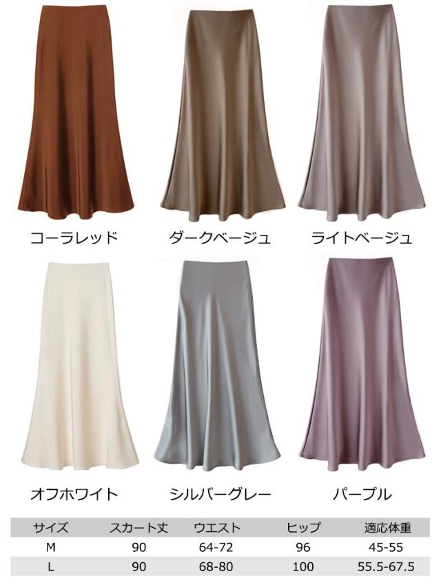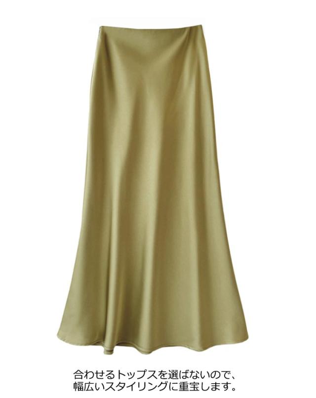 サテン エレガント マキシ丈 スカート きれいめ 通勤 ロングスカート 大人 フレア 光沢感 落ち感 マーメイド 上品 とろみ 韓国風 フェミニン サテン 美脚 レディース 体型カバー 20代 30代 40代