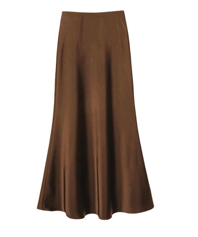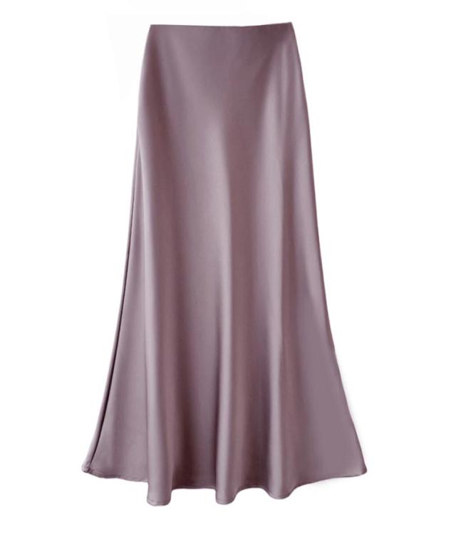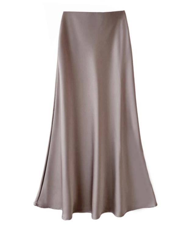 | 1年中着られる! コーディネートを上品に仕上げるフレアマーメイドスカート 長めの着丈が大人っぽい印象のサテンロングスカート。 マーメイドシルエットが、女性らしいシルエットを際立たせてくれます。 マキシ丈なので体系カバーも◎ ウエストゴムなので着脱しやすく、ストレスのない着心地です。 バイアス取りすること裾に向かって緩やかに広がりでがる控えめなフレアシルエットが、女性らしさを引き立てています。 合わせるトップスを選ばないので、幅広いスタイリングに重宝します。 | |