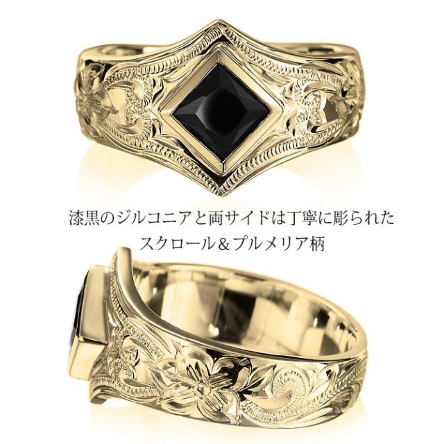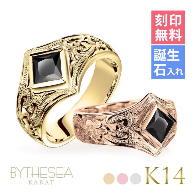 ハワイアンジュエリー 結婚指輪 ペアリング 刻印 誕生石 指輪 2個セット 専用BOX付 K14 14金 ブラックジルコニア 6号〜29号 大きいサイズ 受注生産 ヴァージンリング カップル 夫婦 プレゼント 【品番:GSR602P】
