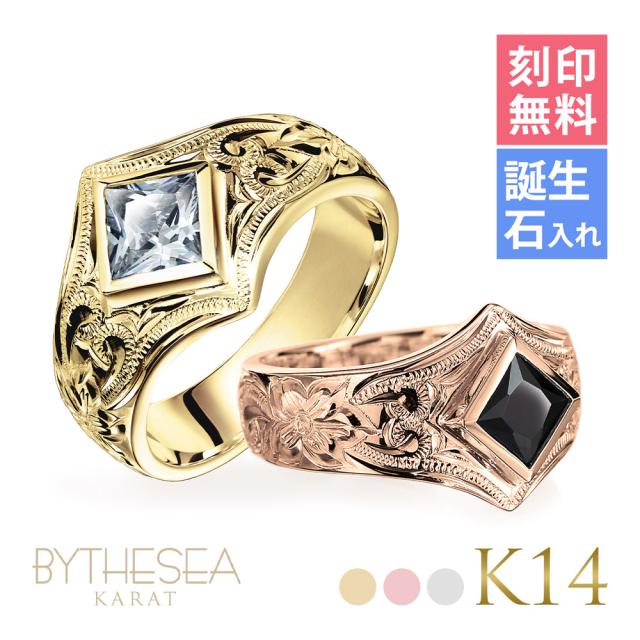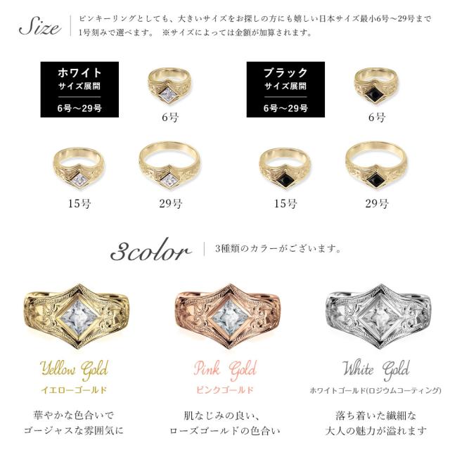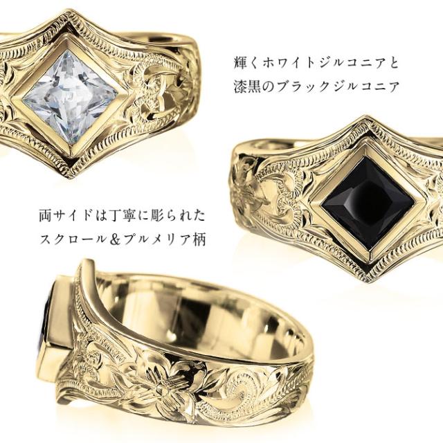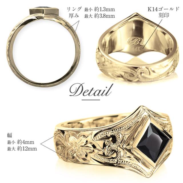 ハワイアンジュエリー オーダーメイド ゴールドリング 刻印 無料 誕生石入れ可 指輪 K14 14金 ブラック&ホワイトジルコニア 6号〜29号 大きいサイズ 受注生産 ヴァージンリング リング メンズ レディース 誕生日 プレゼント 【品番:GSR602】