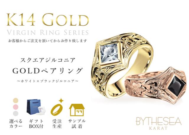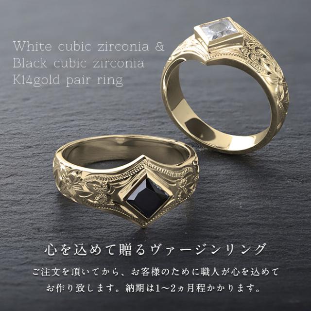 ヴァージンリング ハワイアンジュエリー K14 ペアリング スクエアジルコニア 結婚指輪