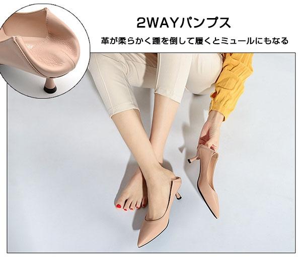 2WAY パンプス かかと 踏める バブーシュ かかとを踏んで履ける ヒール5cm ヒール7cm ピンヒール ポインテッドトゥ シューズ ミュール フォーマル 黒 ブラック ベージュ 就職活動 就活 オフィス 仕事 OL 通勤 通学 発表会 パーティー お呼ばれ 大きいサイズ 小さいサイズ di091x1x1m6