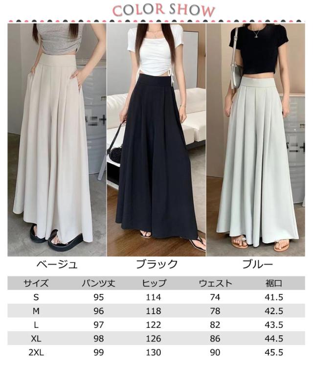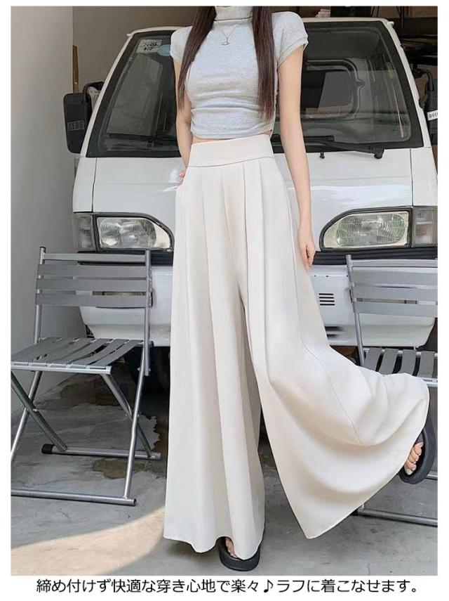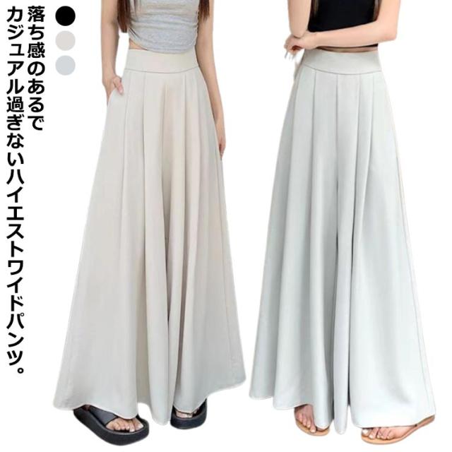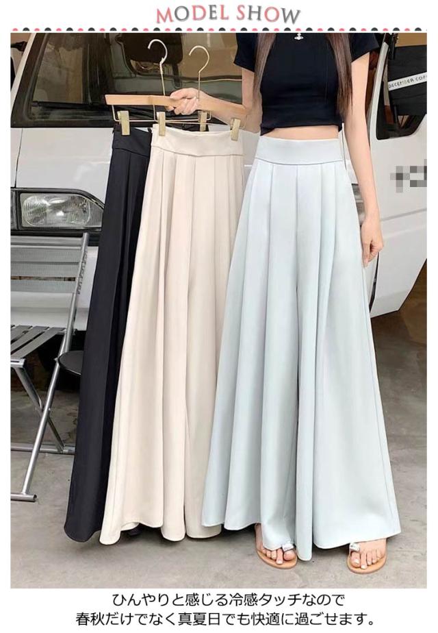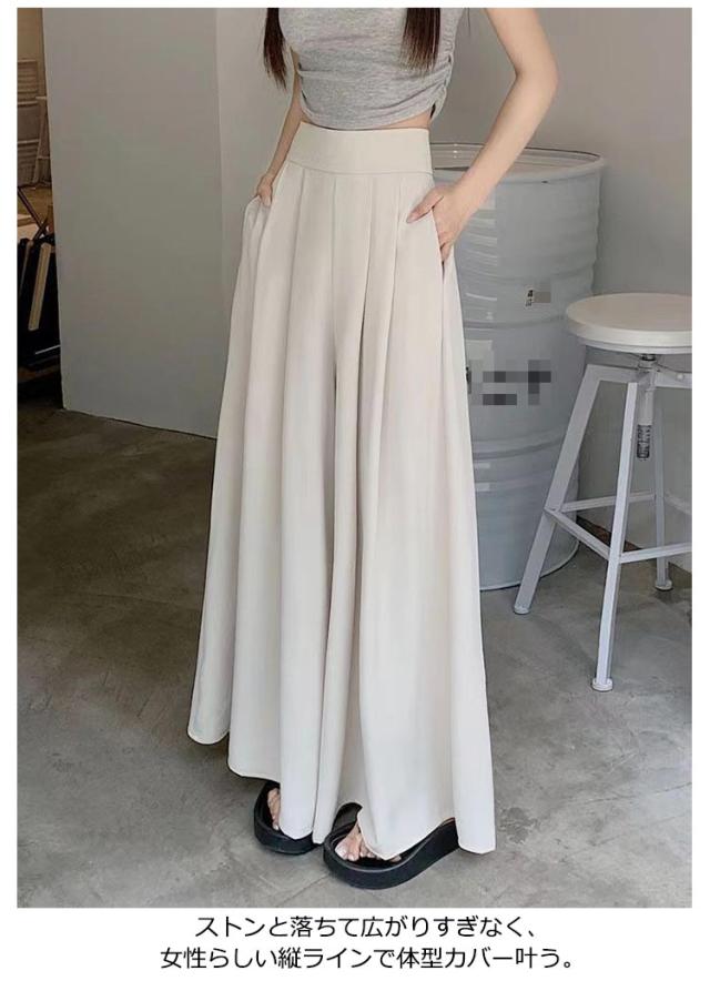 タック入り お洒落 レディース ワイドパンツ フレアパンツ ワイドパンツ ロング丈 ガウチョパンツ 大人 シンプル きれいめ 美脚 女性用 春夏 体型カバー ボトムス ハイウエスト カジュアル