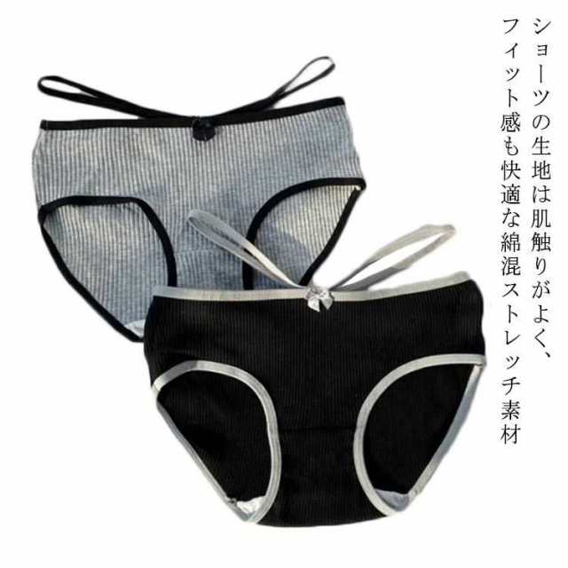 ストライプ ストレスフリー 福袋 お得な2枚組 レディース 下着 綿混ショーツ パンツ シンプル スポーツ おしゃれ 無地 リブ ショーツ