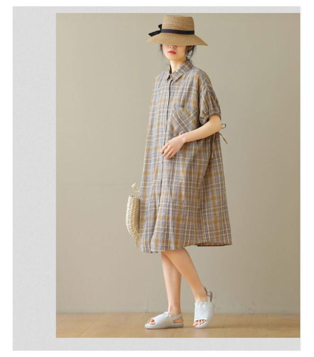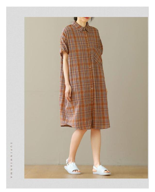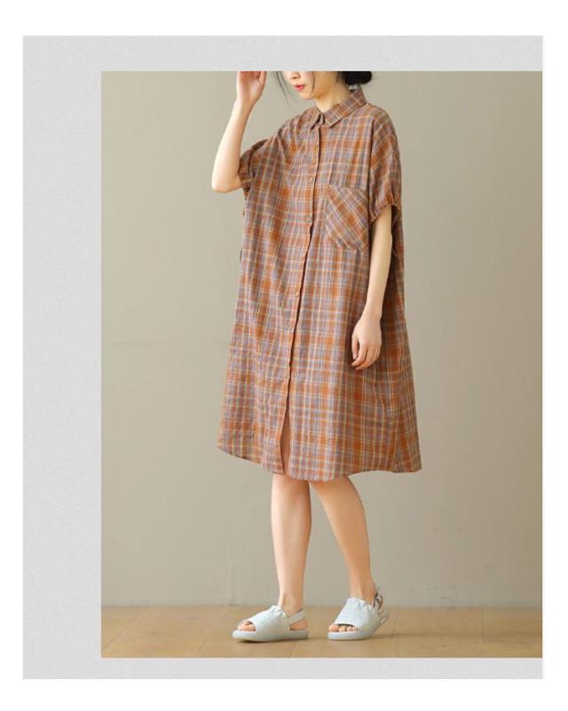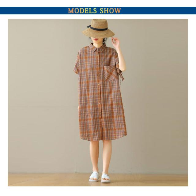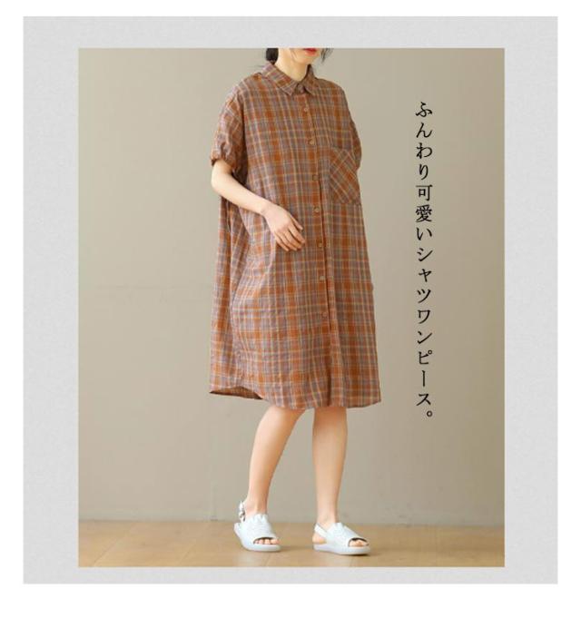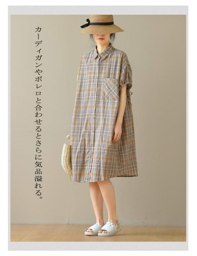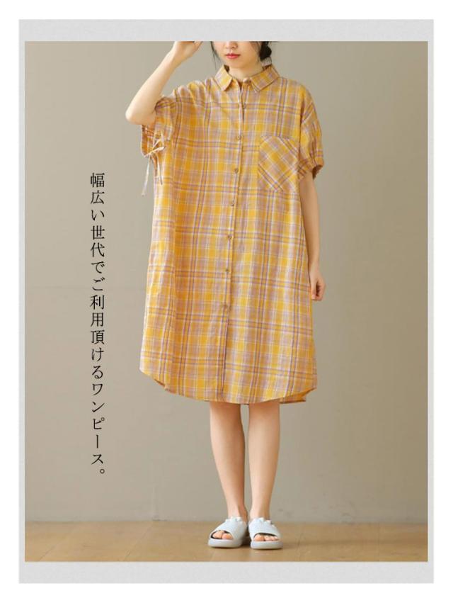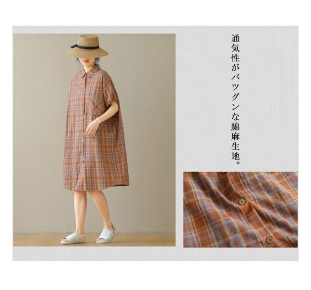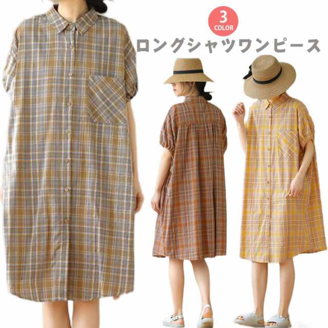 送料無料 ロングシャツワンピース チェック 30代 40代 50代 60代 レディース ファッション ワンピース 大人 ロング 綿 夏 夏服 体型カバー ゆったり 大きいサイズ