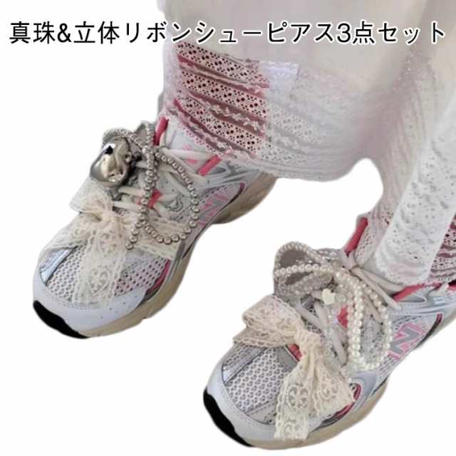 シューズピアス 蝶結び リボン 可愛い 真珠*立体リボンシューピアス3点セット 真珠 立体リボン シューピアス アクセサリー 靴 韓国風 真珠*立体リボンシューピアス3点セット シューアクセサリー パール 靴紐 靴ひも シューレース シューパーツ チャーム ギフト